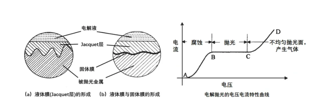 黏膜理论是不锈钢电解抛光的主要理论,工件上脱离的金属离子与抛光液中的磷酸形成一层磷酸盐膜吸附在工件表面,这种黏膜在凸起处较满,凹处较厚,因凸起处电流密度高而溶解快,随黏膜流动,凹凸不断变化,粗糙表面逐渐被整平。