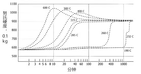 化学镀镍硬度与烘烤时间和温度之间的关系(9%磷含量镀层)