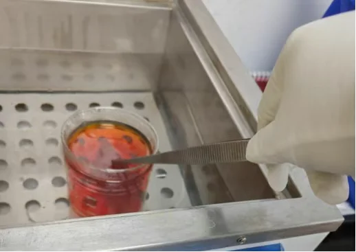 用镊子取出浸泡在磷铬酸溶液中的试片